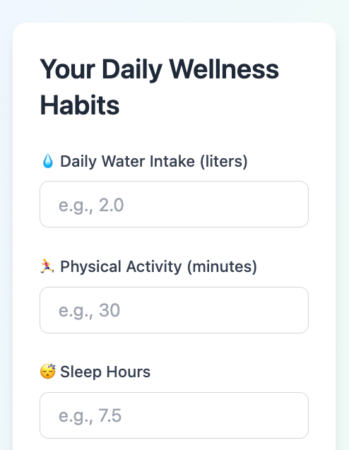 Absolutely! While this tool isn’t a substitute for professional medical advice, the benchmarks we use are based on widely accepted wellness guidelines, such as aiming for 7-8 hours of sleep or staying hydrated with around 2 liters of water daily. The suggestions are practical and tailored to your inputs, focusing on small, achievable steps to improve your routine. Think of it as a friendly nudge in the right direction.